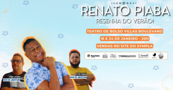 O verão baiano tem suas peculiaridades e ninguém melhor que Renato Piaba para narrá-las. No dia 16 de janeiro de 2026, o veterano do humor sobe ao palco do Teatro de Bolso Villas Boulevard com seu novo espetáculo. Aos 68 anos e colecionando sucessos de bilheteria, Piaba promete arrancar gargalhadas com crônicas e histórias vividas […]