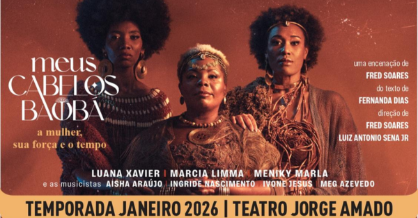 MEUS CABELOS BAOBÁ RETORNA AOS PALCOS DE SALVADOR EM CURTA TEMPORADA Depois do sucesso de sua estreia em Julho no Teatro Casa do Comercio, com ingressos esgotados, o espetáculo MEUS CABELOS DE BAOBA retorna aos palcos de Salvador para uma curta temporada de verão no Teatro Jorge Amado. Com direção de Fred Soares e Luiz Antonio Sena […]
