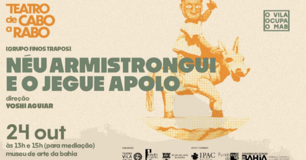 Néu Armistrongui e o Jegue Apolo – Grupo Finos Trapos No palco do Museu de Arte da Bahia, o Grupo finos Trapos apresenta “Néu Amistrongui e o Jegue Apolo”, o primeiro espetáculo de bonecos do Grupo. A peça narra a história de Néu, um jovem nordestino que descobre na literatura a possibilidade de viajar até […]