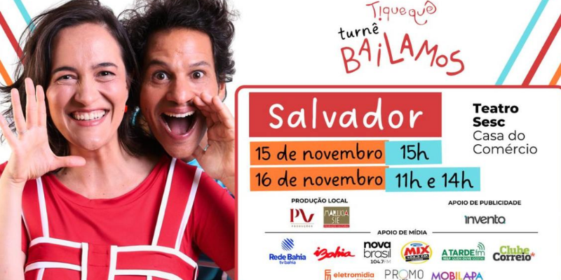 A renomada dupla infantil, Tiquequê, está de volta aos palcos de Salvador, no Teatro SESC CASA DO COMERCIO com um show inovador e totalmente inédito, marcado por músicas novas e o mesmo entusiasmo que cativou crianças e famílias nos espetáculos anteriores. Composta por Diana Tatit e Wem, o duo celebrou recentemente duas décadas de trajetória, consolidando-se como uma referência na cena musical infantil. Ao longo dos anos, Tiquequê conquistou mais de 360 milhões de visualizações no YouTube e teve um crescimento notável nas mídias sociais, evidenciando o apreço do público pela abordagem única da dupla em valorizar a inteligência das crianças. “Bailamos”, o 7º espetáculo da trajetória de Tiquequê, representa uma fusão excepcional entre a música e a linguagem cênica. Cada canção do espetáculo aborda pequenas alegrias e eventos do universo infantil, em letras perspicazes e melodias contagiantes. Em contraste com a abordagem convencional do que é considerado “infantil”, Tiquequê propõe uma experiência visual e sonora complexa e bem elaborada em “Bailamos”. A dupla, conhecida por sua criatividade em mesclar diversos estilos artísticos, incorpora movimentos coreografados, percussão corporal e influências de danças brasileiras de maneira inovadora. “Estamos empolgados em apresentar ‘Bailamos’, um espetáculo que reflete nossa paixão por criar uma experiência única para as crianças e suas famílias. Queremos que todos, independentemente da idade, se sintam envolvidos e inspirados pela música e pela expressão artística”, compartilha Diana Tatit, membro da dupla. O show “Bailamos” promete ser uma celebração memorável da criatividade, diversidade e inteligência das crianças, reafirmando o compromisso duradouro do Tiquequê em proporcionar momentos inesquecíveis para toda a família. O espetáculo estará em turnê nas principais cidades do país, com datas e locais a serem divulgados em breve. Para mais informações e atualizações, visite as redes sociais de Tiquequê. Preparem-se para dançar, cantar e celebrar com Tiquequê em “Bailamos”!