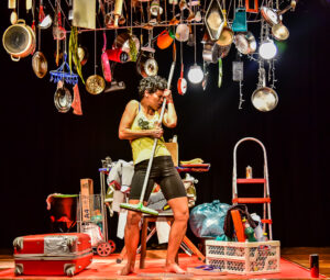 Os espetáculos trazem recortes potentes da vivência feminina. O monólogo “Inferno” traz Ana Paula Bouzas no papel de Vânia, uma diarista nordestina que, confinada em um espaço cênico simbólico, reflete com ironia sobre a desigualdade social e a invisibilidade do trabalho doméstico no Brasil.